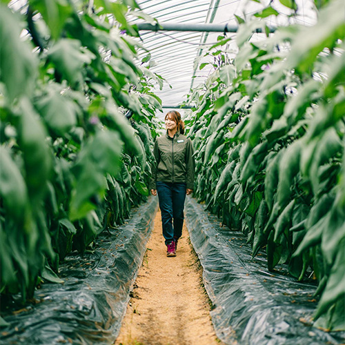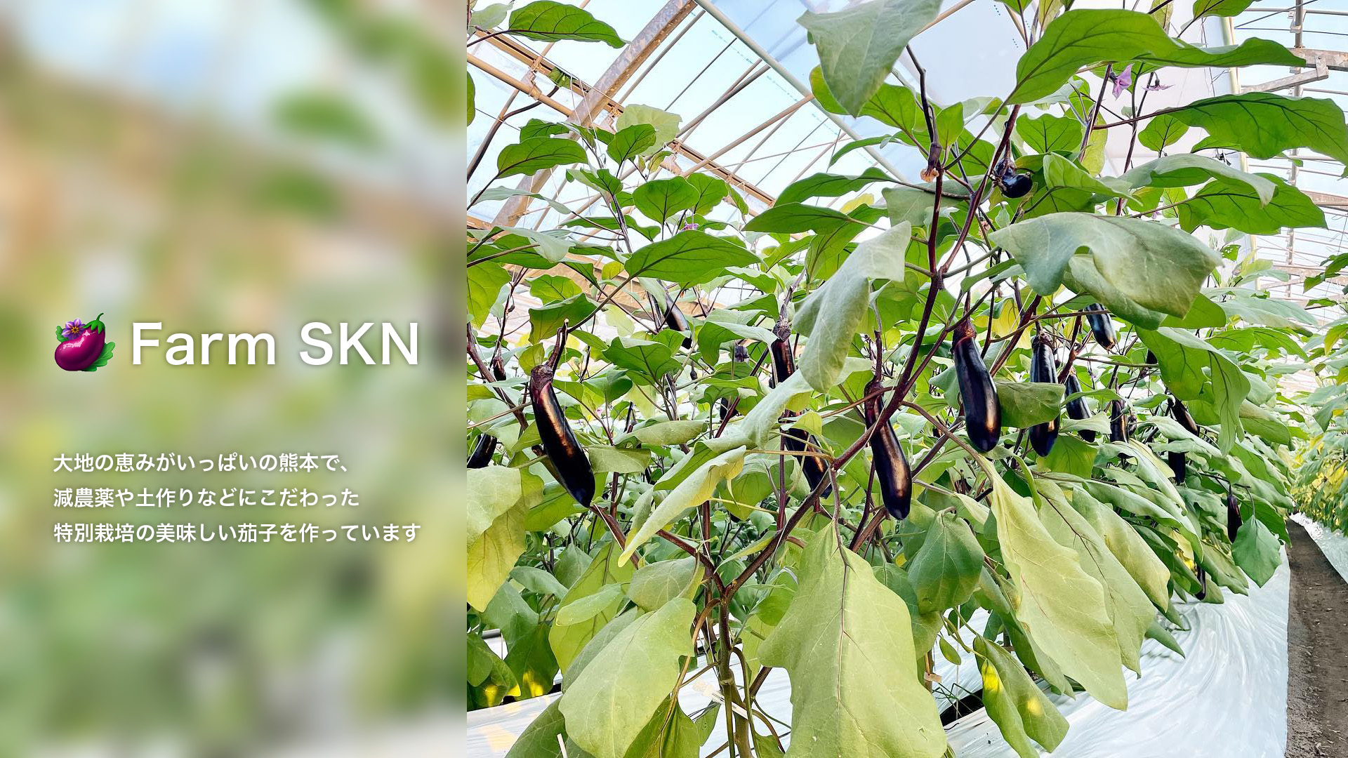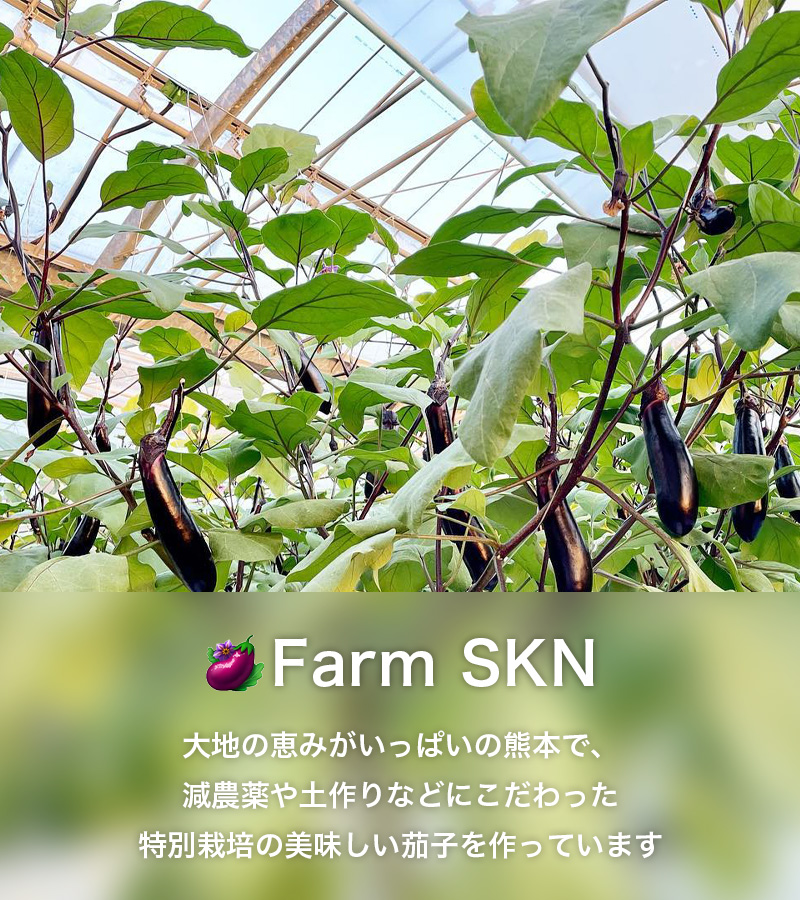 FarmSKNでは、ナスの生産一筋でこれまでやってきました。ナス1本1本に情熱を注ぎ、皆様においしいナスをお届けするために日々頑張っております。